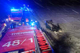 Am frühen Abend des 10. Dezember wurden die Feuerwehren Thenried und Rimbach zu einem Verkehrsunfall mit eingeklemmnten Personen bei Ketterdorf alarmiert. Der Fahrer eines VW-Polo war gegen 17.20 Uhr auf der Kreisstraße CHA 49 zwischen Thenried und Ramsried unterwegs als er aufgrund der schneebedeckten Fahrbahn und nicht angepasster Geswchwindigkeit mit seinem Fahrzeug von der Straße abkam, sich der Polo überschlug und auf dem Dach in der Wiese liegen blieb. Aufgrund der Lagemeldung, dass Personen eingeklemmt seien, alarmierte die ILS um 17.27 Uhr die Feuerwehren Thenried und Rimbach sowie den Rettungsdienst. Die als Erste an der Unfallstelle eintreffende Ortsfeuerwehr Thenried stellte fest, dass die drei Insassen das Fahrzeug bereits ohne weitere Hilfe verlassen hatten. Sie wurden bis zum Eintreffen des Rettungsdienstes von den Feuerwehrkräften betreut. Während die FF Thenried die Unfallstelle ausleuchtete und den Brandschutz sicherstellte, übernahmen die FF Rimbach und die nachalarmierten Kräfte der FF Liebenstein und der FF Bad Kötzting die Vollsperrung der Kreisstraße zwischen Thenried und Bad Kötzting. Der 60-jährige Fahrer blieb laut Polizei unverletzt, während die 38-jährige Beifahrerin und die 25-jährige Tochter des Fahrers leicht verletzt ins Krankenhaus gebracht wurden. Am älteren Fahrzeug entstand Totalschaden. Nach dem Abtransport des Unfallfahrzeugs konnten die eingesetzten Kräfte gegen 18.15 Uhr wieder einrücken.